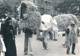 Et spillemandsorkester fra Gladsaxe gik på scenen, og mens de spillede 'Marken er mejet', blev græsset revet sammen. Fra folkene i 1. række til dem i 2. række, fra 2. række til 3. række osv. Efter 7 minutters intensivt arbejde, hvor luften var tyk af græsstøv, var det hele samlet i en kæmpemæssig bunke midt på pladsen. Til stor glæde for børnene.«